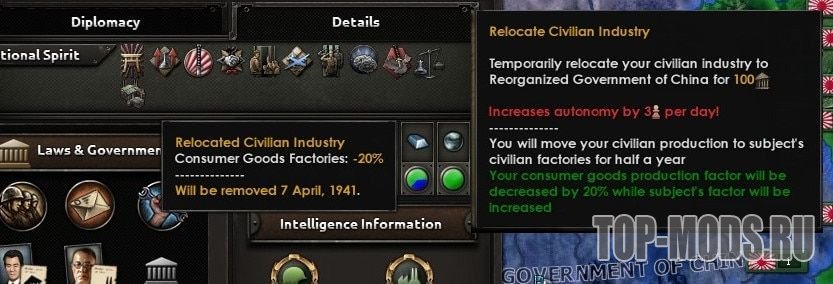 Этот мод добавляет новый Puppet Manager, основанный на скриптовой механике графического интерфейса. Он состоит из Puppet Country Manager и Puppet State Manager, которые доступны, просто нажав на любую провинцию субъекта. Они также подвижны, поэтому не стесняйтесь устанавливать их по своему усмотрению. :)