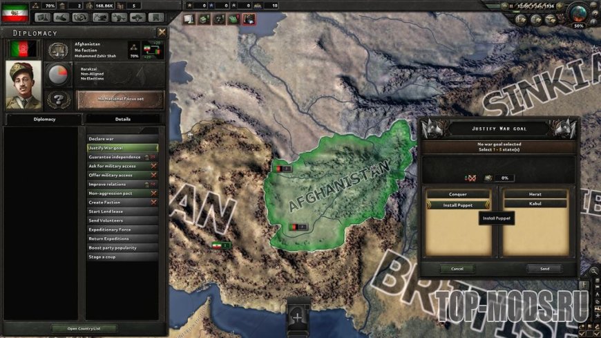 Вы устали завоевывать народы, становиться тотальными победителями, но не можете установить марионеточный режим? Вынуждены аннексировать все свои земли или уйти ни с чем?. Этот мод исправляет это. Теперь даже нейтральные страны могут специально объявить войну, чтобы установить марионетку. У вас есть возможность взять все состояния, взять некоторые состояния и сделать их марионетками, или сделать их марионетками, оставив все. Выбор за вами.