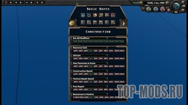 Мод «Precise Buffs - Cheat Ideas» для Hearts of Iron 4 (v1.12.1 - 1.12.2)