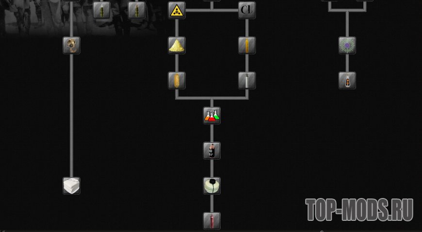 Также мод добавляет возможность изготовлять и применять в военных целях химическое оружие, которое используется командирами отрядов. Стоит учесть, что существуют перки, которые учат защите от химического вооружения. Также надо помнить, что эффективность данного оружия значительно снижается в холодных регионах.
