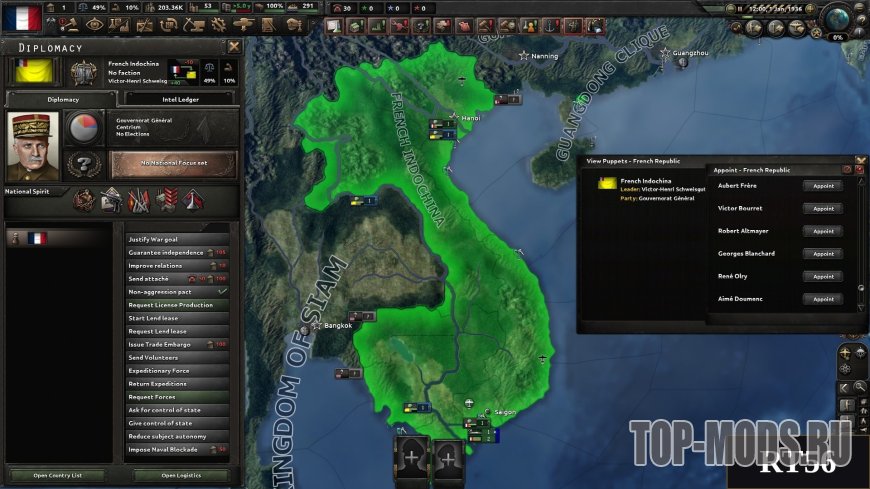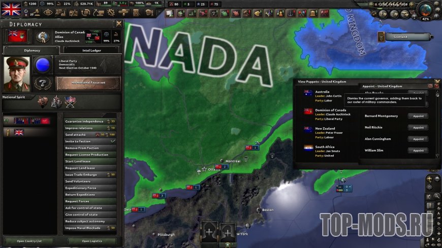 Мод работает, обращаясь к внутриигровому массиву "army_leaders", который содержит всех военачальников страны. После назначения губернатора (лидера) он будет удален из вашего списка и добавлен в список марионеточного государства. Это достигается путем установки его национальности и добавления ролей лидеров страны для всех четырех идеологий.