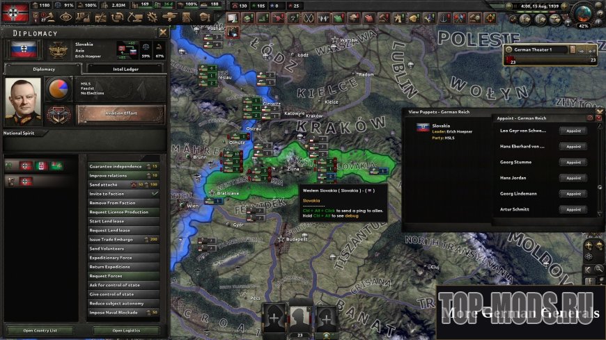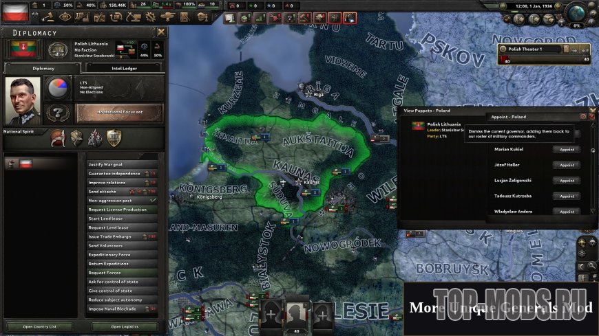 Этот мод позволяет игроку назначить военачальника губернатором (лидером) желаемой марионетки.