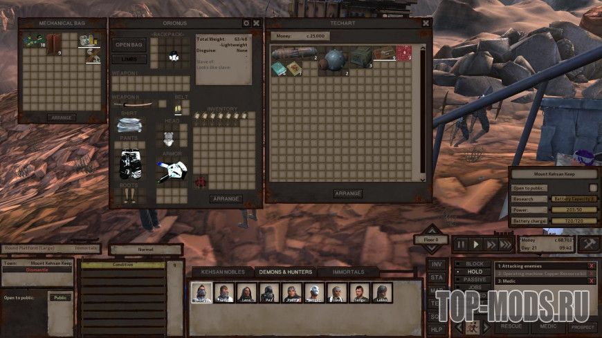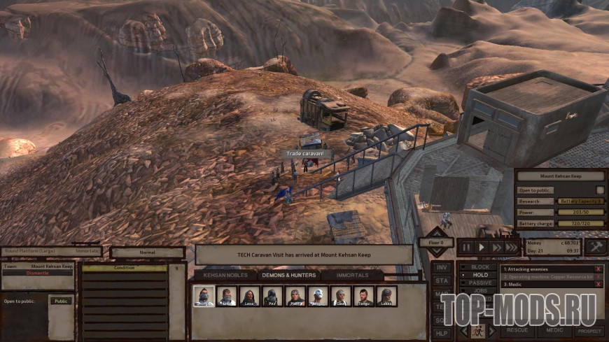 Фракция Техохотников наконец решила начать торговлю. Существует небольшая вероятность (равно как и другие посещения каравана), что Техохотнический караван посетит аванпост вашего игрока после того, как они очистят древнюю лабораторию или библиотеку. Они продают добычу древних руин, такую как: Ядро ИИ, Инженерные исследования, Древняя научная книга, Книга, Ремонтные комплекты и т. д. по обычным ценам.