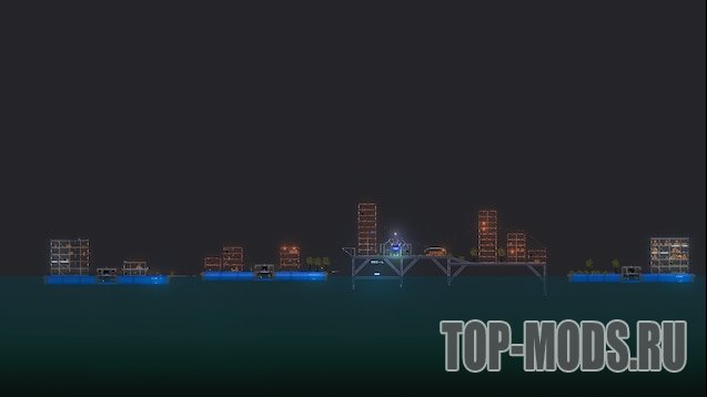 15 зданий. 3 платформы, 1 буровая установка. На каждой платформе есть центр управления, с помощью которого можно отключить стабилизацию или сделать какую-нибудь крутую rp-штуку ig. На платформе есть взрывающийся реактор.