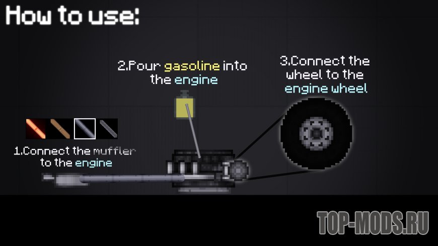 Создайте глушитель и подсоедините его к двигателю с помощью выхлопной трубы (Инструменты → Жесткая проволока → Выхлопная труба).