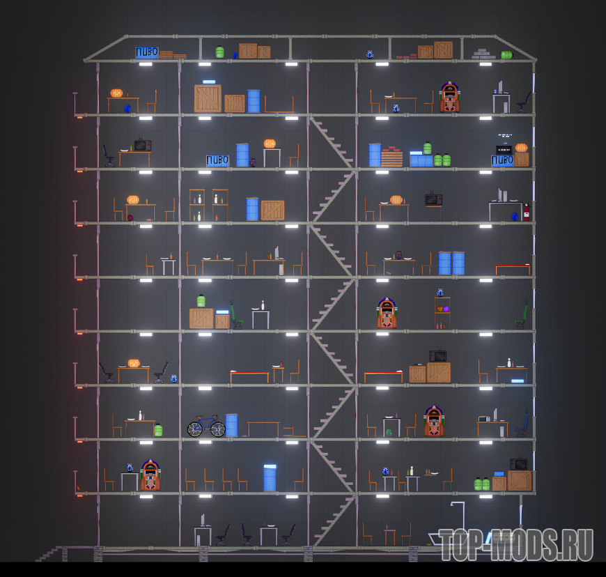 Данная постройка представляет из себя девятиэтажное разрушаемое здание.