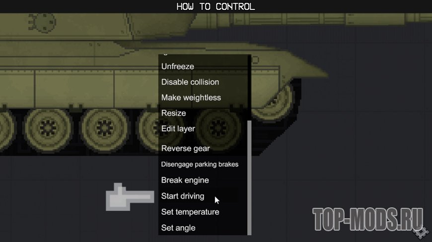 Добавляет элементы управления для танка, автомобиля, автобуса и грузовика.