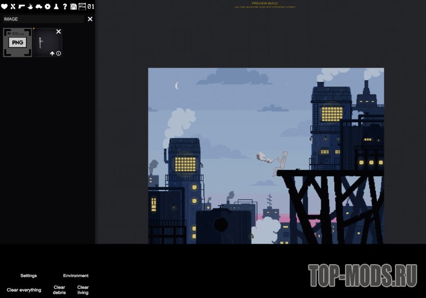 Для того, чтобы установить мод для игры People Playground необходимо распаковать скачанный архив по пути \People playground\Contraptions\ для построек или \People playground\Mods\ для остальных модов.