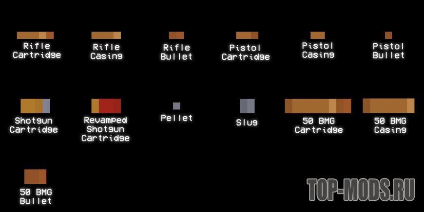 Добавляет в игру пули в стиле "ваниль", не являющиеся функциональными. Просто бутафория.