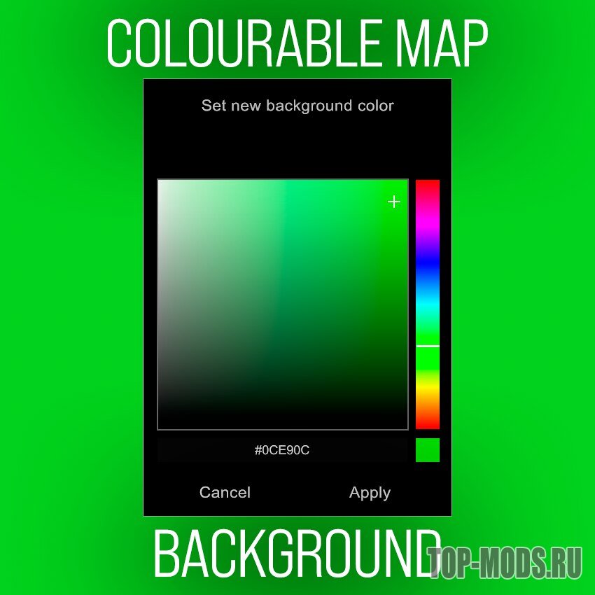 Мод позволяет изменять цвет фона на любой карте. Это будет полезно как для обычной игры, так и при съемке видео, как я показал в своем примере.