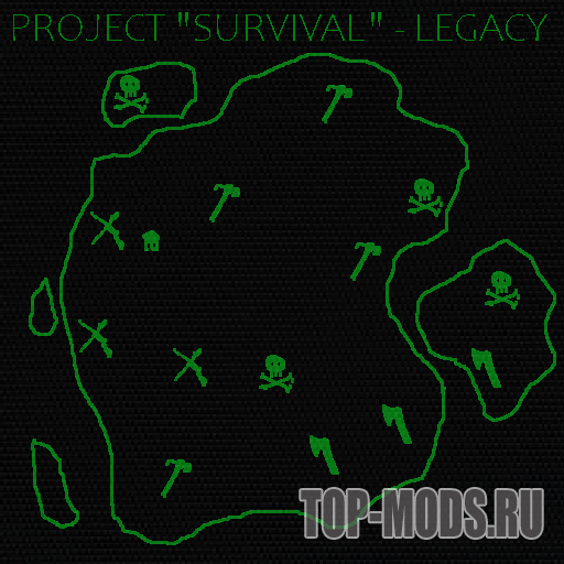 Project Survival – Legacy — модификация, добавляющая различный контент про выживание. В моде есть различные персонажи, холодное и огнестрельное оружие, гранаты и бомбы, шапки и каски, обычная и самодельная броня, повязки и нашивки, предметы и постройки, и прочие предметы для кастомизации. Эта сборка основана на оригинальном моде и дополнений к нему.