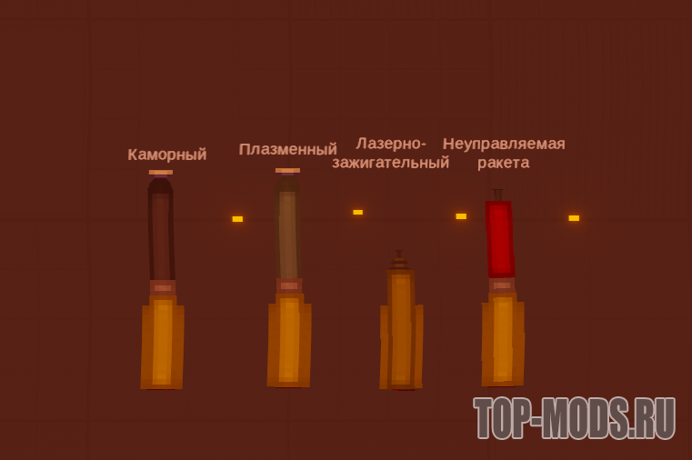 3 Лазерно зажигательный снаряд:Выдуманный,В отличие от остальных это лазер и он срабатывает в каморе,при попадание поджигает броню,кирпичи,дерево,и т.д.Не чего не пробивает и максимум он может взрывной волной что-то подорвать.(Макс. эффективность против всего деревянного.