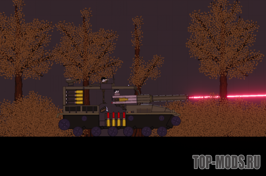 1 Каморный снаряд:Летит по траектории,при попадание он должен пробить броню и после выпустить огромное количество фрагментов которые с вероятностью 98% взорвут что-то в танки.Возможен рикошет.