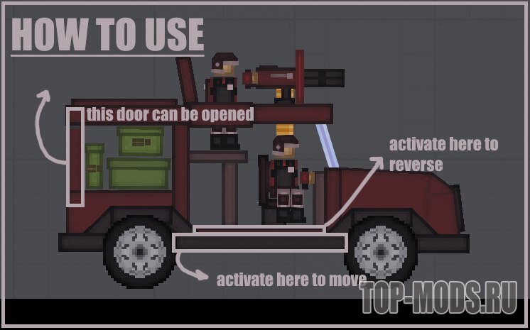 Для того, чтобы установить мод для игры People Playground необходимо распаковать скачанный архив по пути \People playground\Contraptions\ для построек или \People playground\Mods\ для остальных модов.