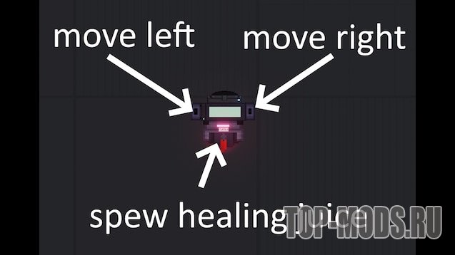 Чтобы использовать медицинский дрон, активируйте взрыватель, подключенный к верхней части груди, положите дрон плашмя и активируйте взрыватель, соединяющий металлический стержень и дрон, он поднимется в воздух. Затем вы можете активировать левый или правый сигналы активации для перемещения дрона. Чтобы извергнуть целебный сок, активируйте жидкостный клапан, и под него упадет целебная сыворотка.