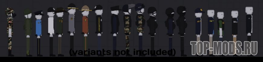 Экипировка: 72 Шляпы, Шлемы, Жилеты, Снаряжение и т.д. Люди/NPC: 52 человека/NPC (включены варианты) Оружие: 14 видов оружия (3 боковых) (11 основных)