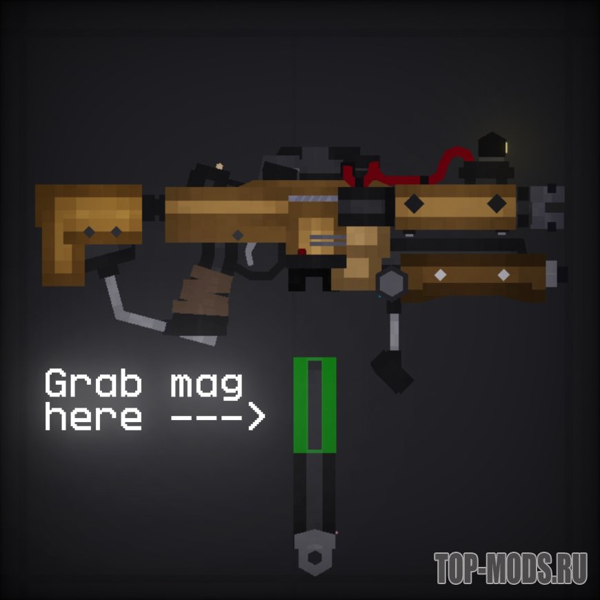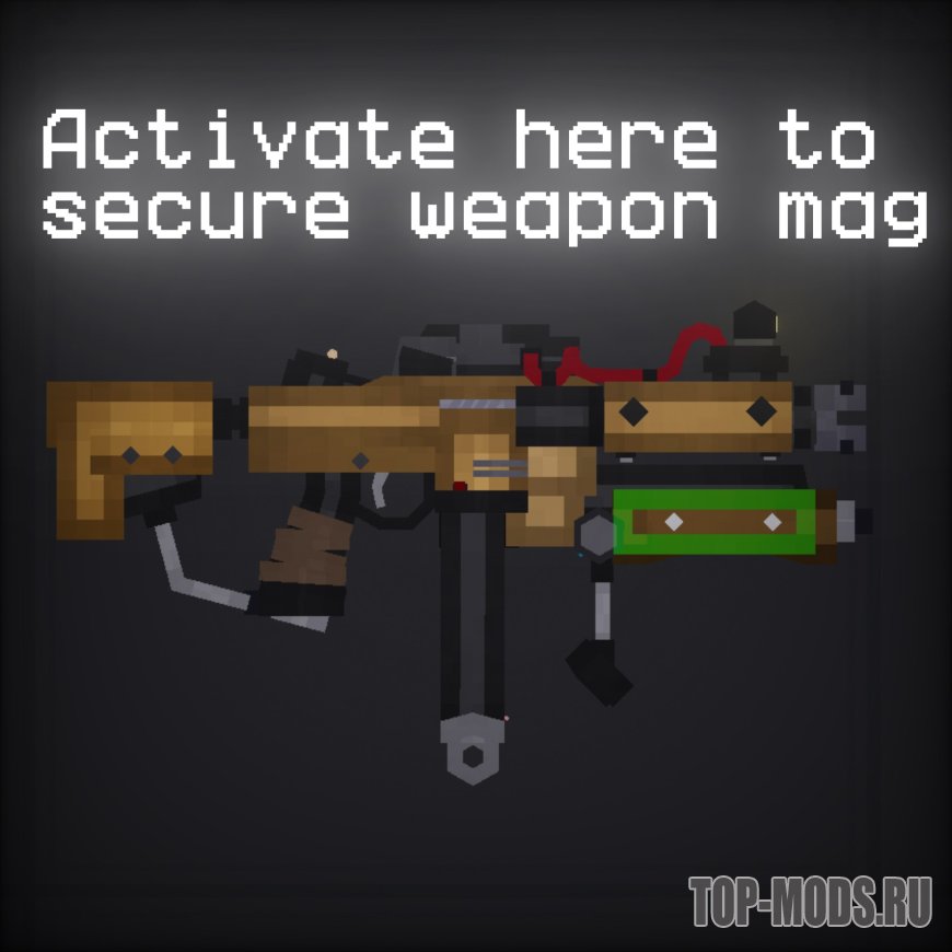 - Сначала нужно взять магазин (желательно за верхнюю металлическую часть) и поместить его в нижнюю часть винтовки. Чтобы он не выпал во время использования, его нужно закрепить специальным держателем.