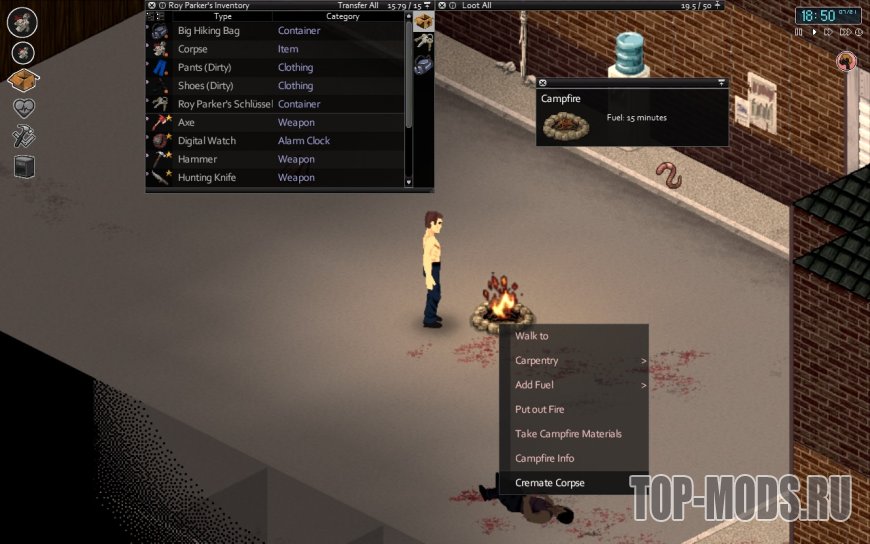 Этот мод реализует функциональность сжигания трупа в костре и даже в других каминах, таких как старинная печь.