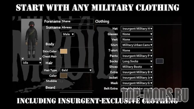 При создании персонажа вы сможете выбрать любую военную одежду, а также дополнительную одежду, предназначенную исключительно для повстанцев.