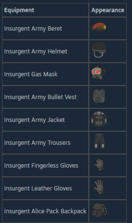 Снаряжение повстанцев нельзя найти в обычном луте. Не повстанцы могут получить ценное снаряжение, найдя редких погибших операторов повстанцев по всему округу Нокс. Каждый из них может быть найден только один раз.