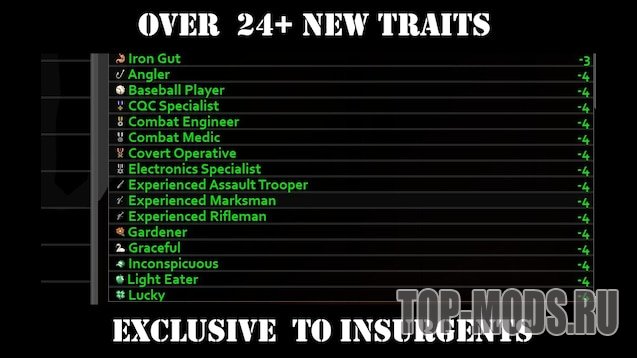 nsurgents начинают с +12 очков черт и имеют в своем распоряжении множество способностей. 30+ новых черт разделены на: Экипировка, Способности и Специализация.