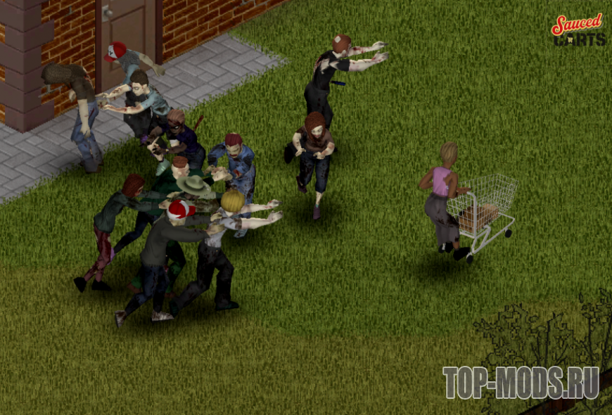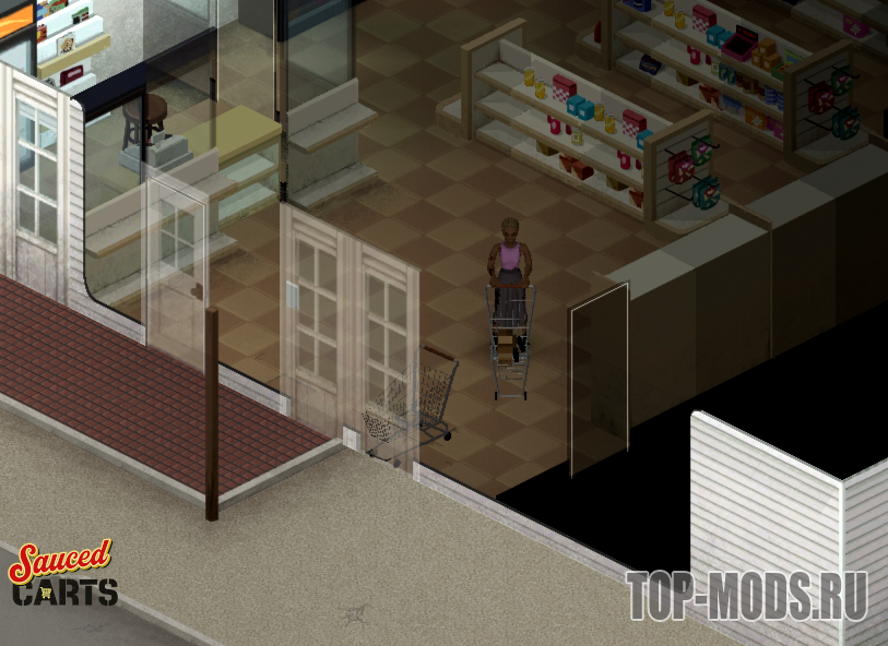 Мод «SaucedCarts – Pushable Shopping Carts» добавляет в Project Zomboid толкаемые тележки, появляющиеся в неисследованных зонах продуктовых магазинов, универмагов, складов и парковок округа Нокс.
