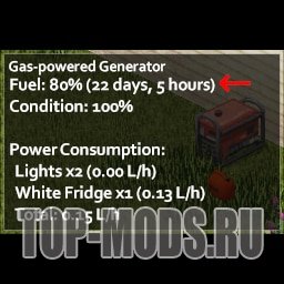 Простой мод, который отображает дни и часы, оставшиеся до того, как в генераторе закончится топливо.