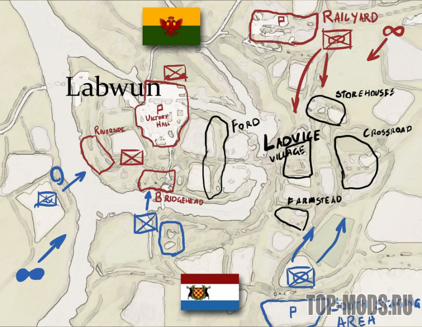 Захват самого Лабвуна пришелся на моторизованные и десантные войска. Их главная цель - обезопасить Зал Победы - здание администрации города - и другие близлежащие цели или исчерпать городской гарнизон с помощью действий по истощению на улице. Тем временем на востоке бронетанковые и механизированные войска продвигаются на север, чтобы захватить соседние города и дороги, чтобы запретить поставки в Лабвун.
