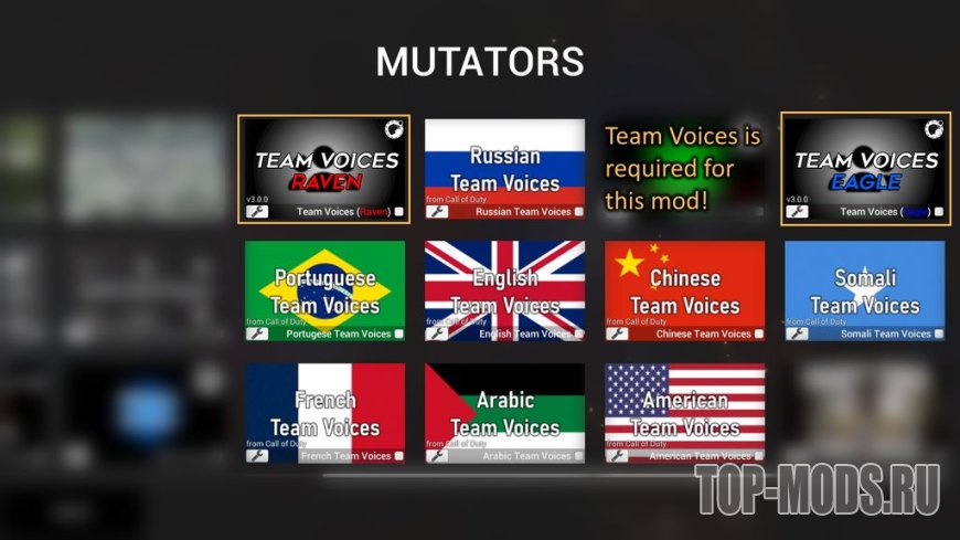 Для работы этого мода требуется Team Voices 3.0 от RadioactiveJellyfish.