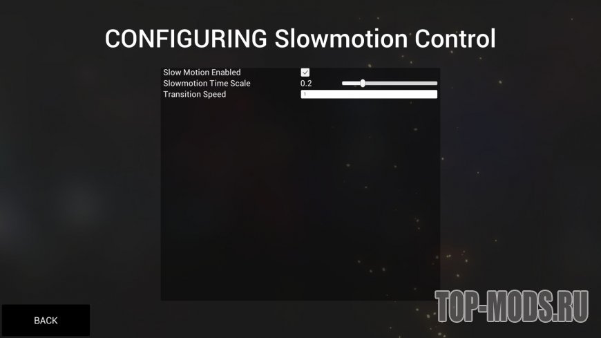 Позволяет управлять скоростью замедления. Также добавляет плавный переход в режим замедления и обратно. Мутатор также исправляет несколько проблем с ванильным замедлением, например, его сброс при паузе или нажатии F8. Есть возможность полностью отключить его, если вы хотите.