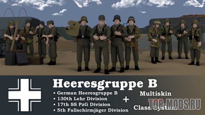 Случайный выбор при появлении: 9 вариантов немецких гренадеров M43, 1 панцергренадер 130-й учебной дивизии, 1 парашютист 5-й дивизии Fallschirmjäger, 1 панцергренадер 17-й дивизии Waffen-SS.