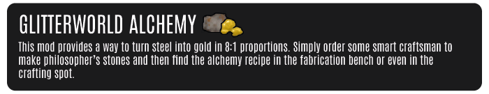 Glitterworld Uprising добавляет 8 новых машин, 1 ресурс и 7 предметов, каждый из которых обладает уникальными способностями. Если вам нравится погружаться в опасный мир, основанный на ультра-технологиях, коррупции и стремлении к совершенству, то этот мод для вас.