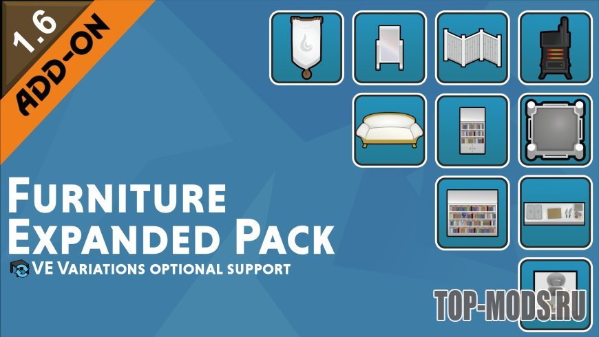 Expanded Furniture Pack - это мод, созданный под влиянием Vanilla Furniture Expanded Оскара Потоцки. Изначально я планировал сделать лишь несколько дополнительных предметов для украшения комнат, чтобы они были функциональны и подчеркивали красоту помещения.