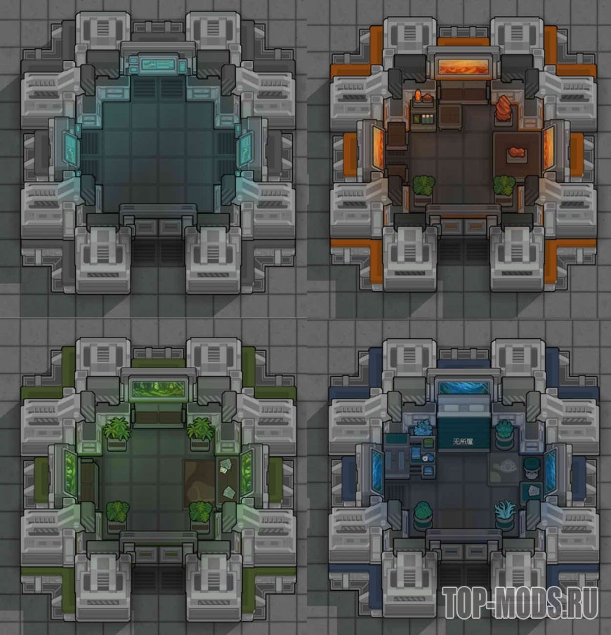 Стены, строительные модули и оконные модули этого мода герметичны и могут быть использованы как часть космического корабля из DLC.
