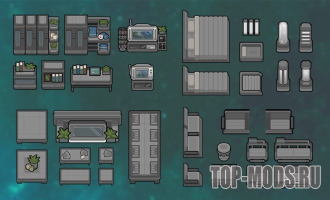 Коллекция мебели в космическом научно-фантастическом стиле, состоящая из более чем 50 предметов мебели, настенных модулей и т.д.