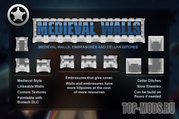 Простой мод со средневековыми стенами, вдохновленный модом Fortifications - Medieval.