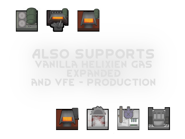 Есть еще Crafting Table(https://top-mods.ru/mods/rimworld/building/33333-crafting-table.html) и Survival Expanded — Production spot (https://top-mods.ru/mods/rimworld/building/33254-survival-expanded-production-spots.html), которые делают всё то же самое, без подвода топлива и электротока.