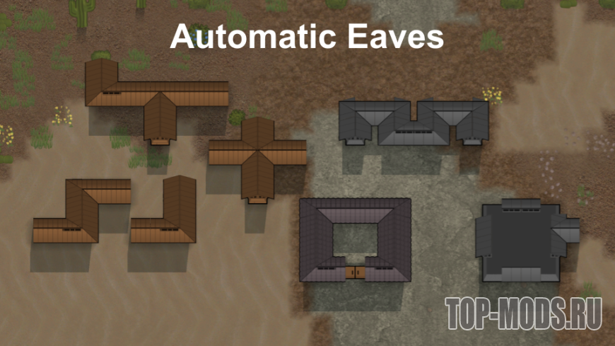 Этот простой мод автоматически отрисовывает текстуры карнизов крыш из мода Architecture of the Rim (включая углы) вокруг стен там, где это необходимо.