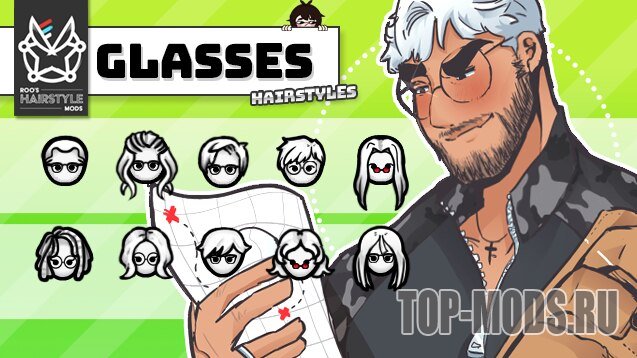 Этот мод для волос добавляет 14 новых причесок, в каждой из которых доступно 3 типа очков.
