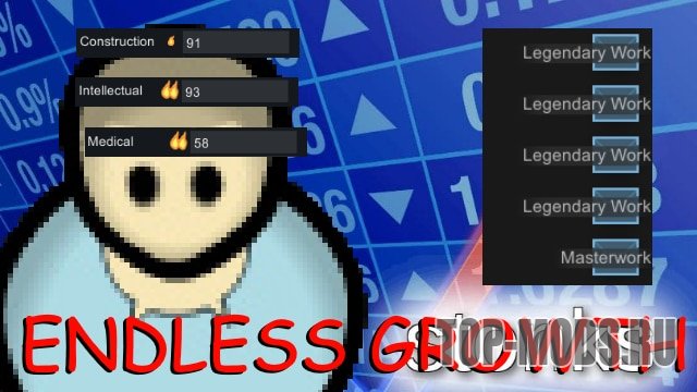 Попробуй новую игру, читами или через консоль разраба сделать пешке навык выше 20 и посмотреть будет ли пешка работать. Если пешка будет работать, то Endless Growth просто не встал в твоё старое сохранение. (об этом писали на странице в стиме). Если пешка не будет работать и будет такое же сообщение, то это уже несовместимость модов.