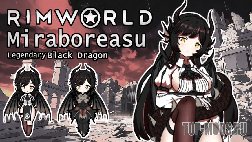 Этот мод добавляет в RimWorld уникального персонажа — Мирабореас, чей дизайн основан на Черном Драконе из Monster Hunter. Однажды Мира загорала на площади Руин Замка Шраде, когда внезапно появились четыре охотника, верхом на птерозаврах. После жестокой битвы Черный Дракон упал в RimWorld из-за ошибки модели.