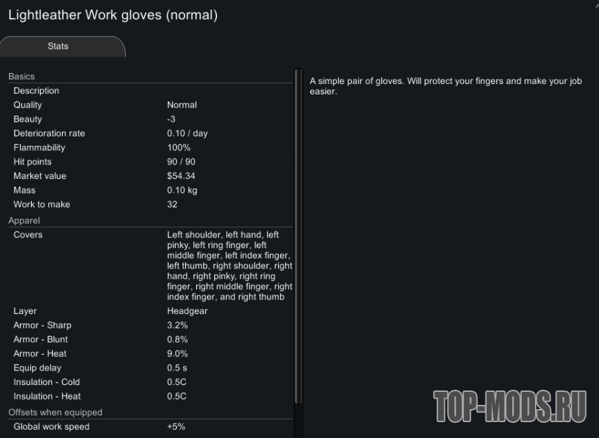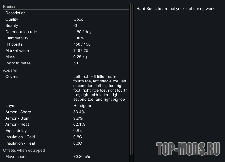 Простой мод, который добавляет в Rimworld ботинки и перчатки.