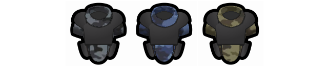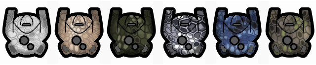 Существующий маскировочный костюм VAE был дополнен заплатками, чтобы обеспечить функциональность камуфляжа для использования в лесной местности. В дополнение к существующему костюму VAE ghillie были добавлены пять новых маскировочных костюмов для остальных биомов - арктики, пустыни, джунглей, камней и городов. Я действительно очень хотел использовать такие вещи, как мешки для мусора или куски металлического шлака для декораций urban и каменные глыбы для декораций stone, но работа по созданию пользовательской графики была уже довольно сложной, и я не хотел добавлять тонны дополнительной работы для себя, поэтому это просто изменение цвета других декораций. маскировочные костюмы.