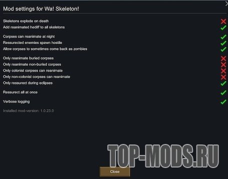 Добавляет расу скелетов. В основном у них низкое здоровье и низкая скорость работы, но они могут выжить в экстремальных условиях без сна и еды.
