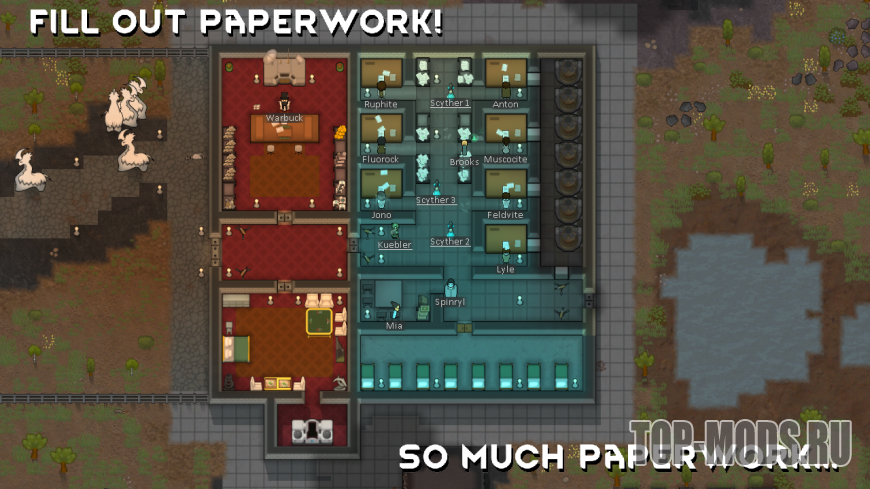 Нужны деньги, чтобы заплатить за все эти блестящие товары? Зарабатывайте деньги, заполняя бумаги! Бумажная работа - это новый ресурс, доступный в этом моде: его сырая форма - незаполненная бумажная работа, которую пешка может превратить в заполненную бумажную работу на офисном столе. Что вы можете сделать с этими бумагами, спросите вы? Ничего! Она абсолютно бесполезна! Однако Корпорация, похоже, одержима желанием заполнить эти бумаги и готова заплатить вам за их заполнение. Любой торговец Корпорации купит у вас заполненные бумаги. Для заполнения бумаг не требуется никаких навыков, а их сырая форма доступна в практически безграничных количествах по разрешению стажера, так что это способ превратить даже самых неквалифицированных пешек в прибыльных работников. В корпорации серебро - король, поэтому вы захотите заставить всех работать, чтобы заработать как можно больше денег.