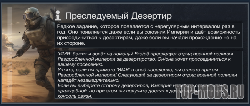 Перевод на русский язык мода Vanilla Factions Expanded - Deserters.