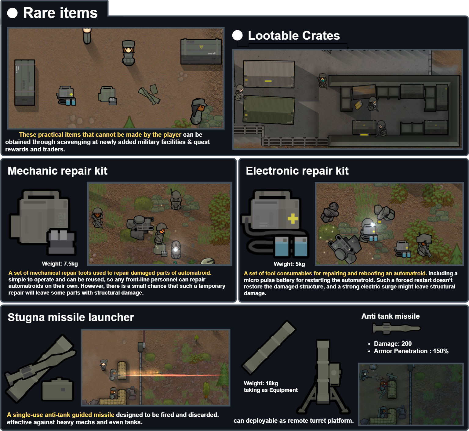 Как опробую этот мод подробнее напишу со скриншотами отзыв. но я сразу вижу что кто-то у кого-то чето спиздил, поскольку башню танка на ножках я уже видел в моде Cinders of the embergarden