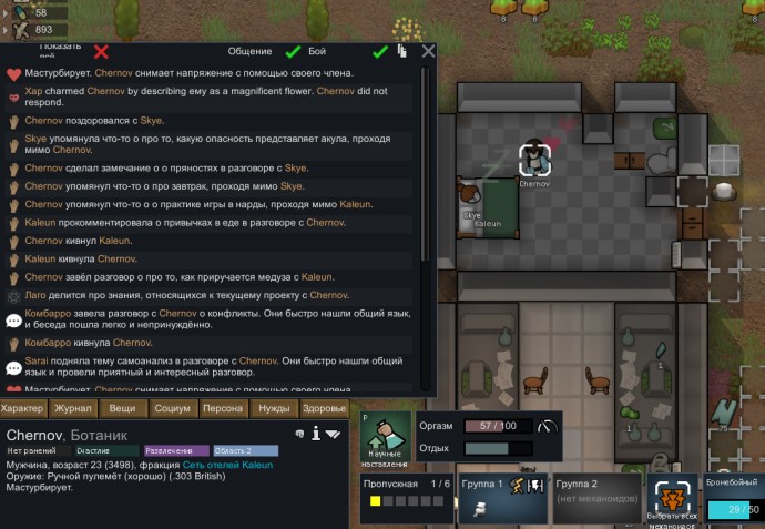 Одна из главных особенностей RJW. Потребность в сексе работает так же, как еда или отдых. Он уменьшается с течением времени, и его следует контролировать, чтобы ваши пешки были счастливы.