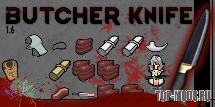 Мод добавляет мясницкий нож, которым можно разделывать убитых существ.
