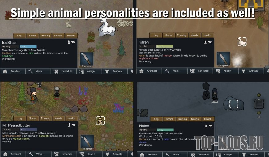 У животных тоже простые характеры! Они предоставляют небольшие бонусы, поэтому обязательно отключите их в настройках модов, если вы хотите по-настоящему ванильный баланс.